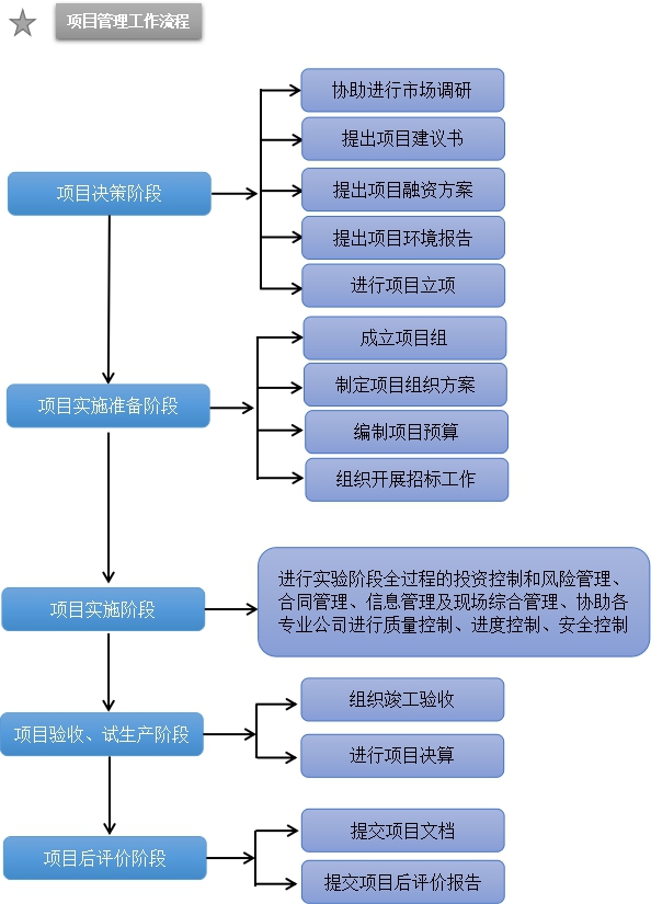 項(xiàng)目管理服務(wù)內(nèi)容:為業(yè)主提供貫穿項(xiàng)目前期策劃階段、勘察設(shè)計(jì)階段、建設(shè)準(zhǔn)備階段、施工階段、驗(yàn)收交付階段、保修期管理等各階段的綜合性全過(guò)程項(xiàng)目管理及工程咨詢服務(wù)。